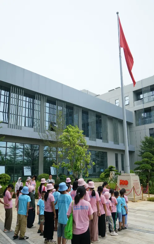 紧接着,孩子们来到了建党百年庆典红旗——070号红旗前。讲解员讲述了人生就是博药业集团与庆典红旗的深厚渊源。孩子们听得津津有味,眼中闪烁着对党和国家的热爱与敬仰。